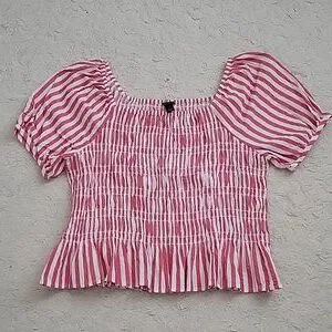 Brand new w/o tags. Cute stretchy top in Salmon & white.