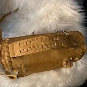 Exterior Details: Saddle shape, whipstitching details + zipper tassels