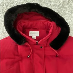 Worthington Womens Down Winter Heavy Coat Parka Faux Fur Trim Hood Red Sz 2X