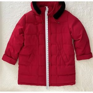 Removable Hood, buttons. 75% Down 25% Waterfowl Feathers.