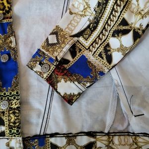 beautiful Versace beautiful style print. denim jacket, absolutely stunning with bottoms closures. New with tags and original packaging.