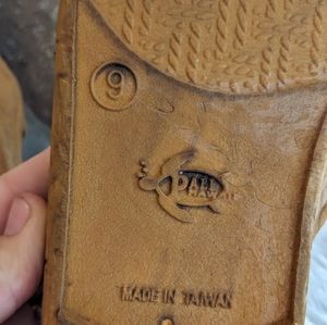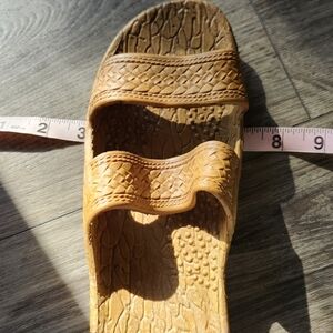 Pali Hawaii Faux Snake Skin Pattern Slip On Mustard Sandal Size 9