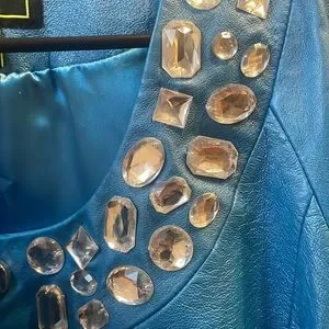 Sharif Studio vintage blue leather coat with rhinestones - plus size, drag