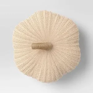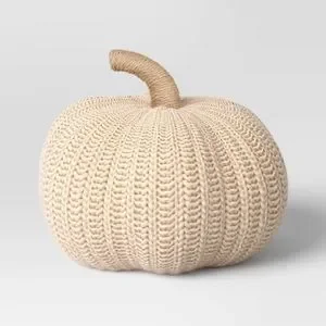 This Knit Pumpkin with Jute Stem Novelty Throw Pillow from Threshold™ will beautifully accentuate your space for the fall season. Made of 100% acrylic with a knit design detailed with ribs, the solid-color decorative throw pillow instantly grabs your attention with its plump pumpkin silhouette. This pumpkin throw pillow with a brown jute stem top adds autumn appeal to any bedscape or seating arrangement with its artistic illustration.