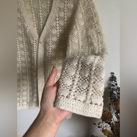 Fits size small loose to size large fitted. Amazing condition super cute just never wear it. Cardigan sweater