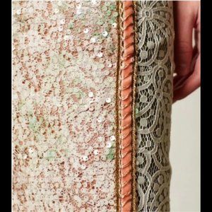 This stunning Byron Lars Lana Sheath dress is a rare find that will make you the star of any party or cocktail event. The beautiful multicolor floral lace and sequin accents give it a unique and elegant touch, while the V-neckline and short sleeves add a classic and flattering look. Crafted from a high-quality cotton blend with delicate lace fabric, this midi dress is perfect for any season, whether it's winter, summer, fall, or spring. And with dry clean only garment care, you can rest assured that it will remain in impeccable condition for years to come. Don't miss the chance to own this Anthropologie brand dress, which is suitable for women in regular size 2.