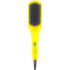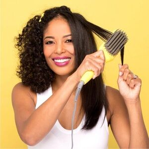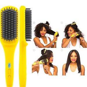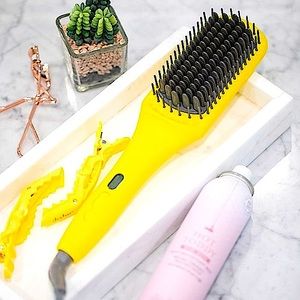 A heated straightening brush that combines the heat of a flat iron with the structure of a paddle brush to create a smooth, frizz-free look in one easy step.