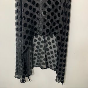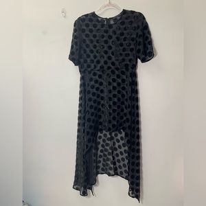 ZARA Velvet Spot Mesh Sheer Dress in Black Asymmetrical Hem Short Sleeve Size S