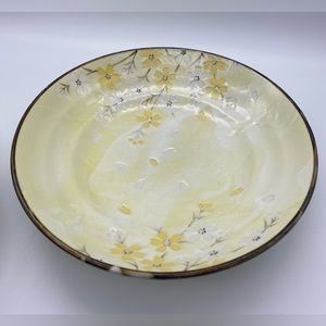 Ceramic Japanese Yellow White Cherry Blossom Soup Bowls 9in