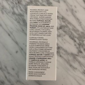 The ultimate clean, super nourishing, youth-boosting hand cream to leave hands soft, cushioned, and smooth. It works hard to keep hands ultramoisturized and supple while it helps firm skin and smooth the look of roughness and wrinkles over time. Thick and rich, it sinks into skin like magic, soothes and nourishes on contact, and leaves hands soft, cushioned, and smooth—even after just one use. The blend of nourishing butters (bacuri, cupuaçu, and shea) plus clinically tested jojoba seed extract leaves your hands replenished and ready for anything.