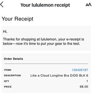 Lululemon Like A Cloud D/DD Longline Bra, size 6, in Black. Strappy long line style yoga sports bra.