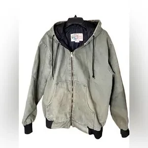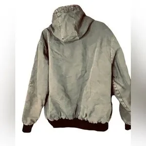 Ozark Mountain Apparel, insulated, hooded, work coat, elastic hem and cuffs. Front pockets, zips has a hood with drawstring. Used in good condition.