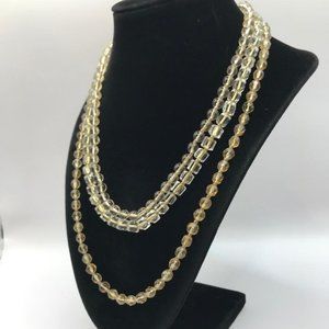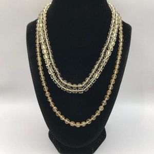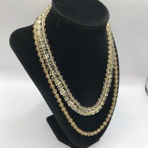 Triple Layer Clear Round & Square Glass Bead Necklace