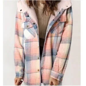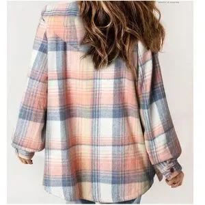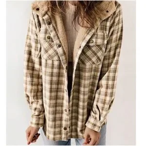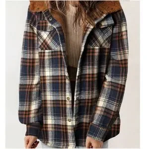 Cozy Plaid Print Teddy Lined Button Jacket Shacket