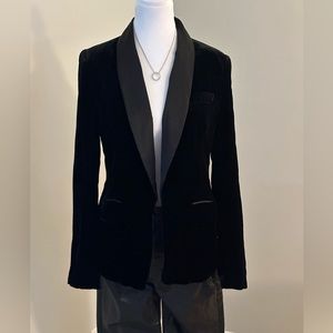 JUST IN TIME FOR THE HOLIDAYS! Beautiful Velvet blazer with satin lapel from Joie. Beautiful dressed up or with jeans. There is no closure to the blazer. Excellent preowned condition! Worn twice!