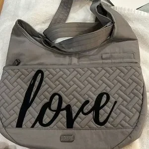 NWOT Lug canopy crossbody in grey with black embroidery