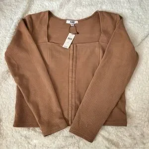 NWT Anthropologie/BB Dakota long sleeve corset-style top with square neckline, front seams, and front hook-eye closures. Cotton/rayon/nylon/elastane blend. Has some stretch. Marked as size XL.