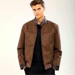 NWOT F COLLECTIONS Men’s Faux Suede Leather Bomber Jacket Made In Italy