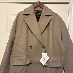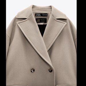 ZARA WOMEN NEW OVERSIZED DOUBLE BREASTED WOOL BLEND COAT GRAY 2578/747 X…