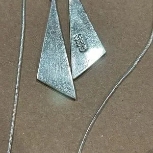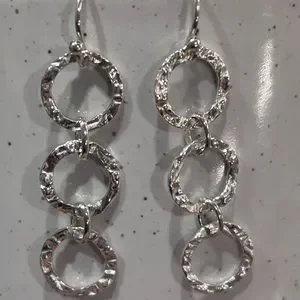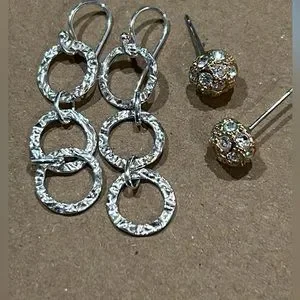 Silver and gold tone jewelry including a pair of sterling silver three circle dangling earrings.