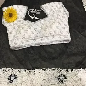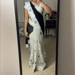 Black and white shimmer net Saree with emboridery. Brand new. Never worn. Size:36”