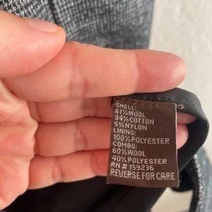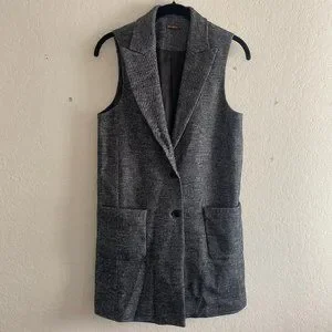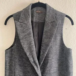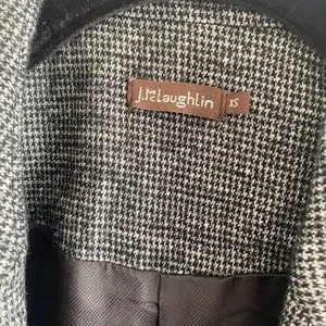 Pre-owned condition. J. Mclaughlin women's size XS heather gray blazer vest. Two front pockets. Button closure. Houndstooth pattern. Sleeveless. No holes or stains. 61% wool, 34% cotton, 5% nylon.