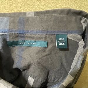 Men’s 4XLT Perry Ellis Charcoal Blue Plaid Long Sleeve Button Up Shirt