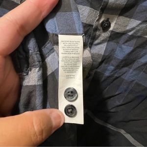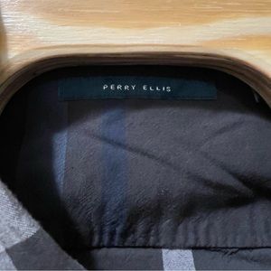 Men’s Perry Ellis Charcoal Blue Plaid Long Sleeve Button Up Shirt