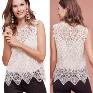 Anthropologie / Deletta Cream Lace Shell - Size S