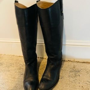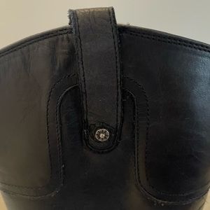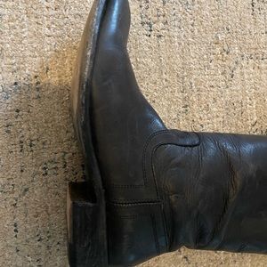 Gorgeous FRYE boots in black. Size 10 lightly distressed look…pull-on no zip. Neutral style goes with everything! Style: Melissa