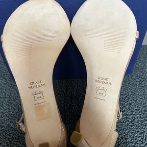 Iconic Stuart Weitzman ankle strap sandals in nude patent leather. Brand new in box, never worn! Size 9, true to size. Heel height is just over 4”. Will come with box and dust bag. No trades.