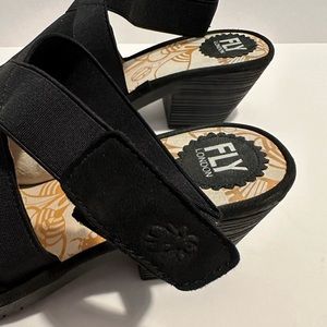 Women's Fly London Wato Cupido Sandal Black Leather Strappy Heels Size 9 40
