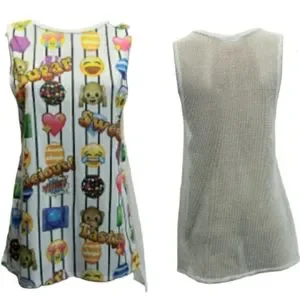 Candy Crush Emoji Sleeveless Tunic with Mesh Back - K-Pop Style - (fits S - M)
