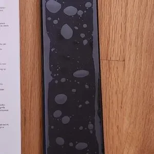 has a non-skid base that holds the wrist rest in place. but the plastic for the non-skid base was never removed or used, so you do see the bubbles on the bottom from when moving the wrist rest around