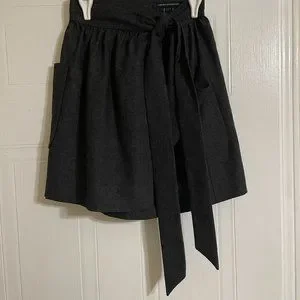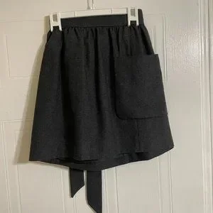 French Connection Asymmetrical Dark Gray Wool Blend Skirt with Bow + Pockets