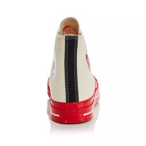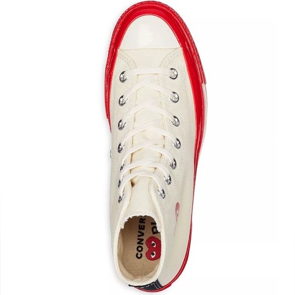 Comme des Garcons PLAY x Converse, High Top Sneakers, Beige, Unisex, Red Sole, New with Tags, CDG Converse, Streetwear Fashion, Avant-Garde Footwear, Trending, Nordstrom, Saks 5th Avenue, Bloomingdale’s, Bergdorf Goodman, Bodega, Billionaire Boys Club, Sneakerhead, Limited Edition, Asian Owned, Asian Founded