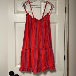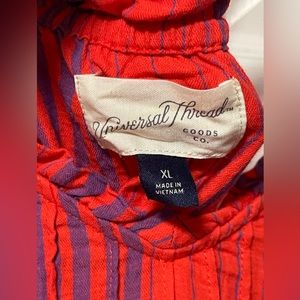Universal Thread Woman's Dress Mini Sleeveless Red Stripe Pintuck Size XL
