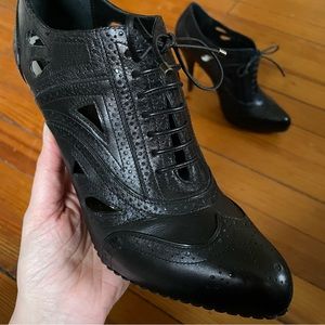 Dior Black Leather Wingtip Oxford Lace Up Bootie