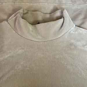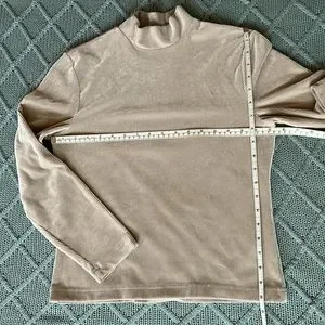 Corduroy look - so soft. Great vintage condition with gentle wear, no apparent flaws. Stretchy and comfortable with amazing texture, this velvet/velour top features long sleeves, mock neckline, and corduroy-like rubbing all over. Cute and 70s with flare jeans or under overalls.