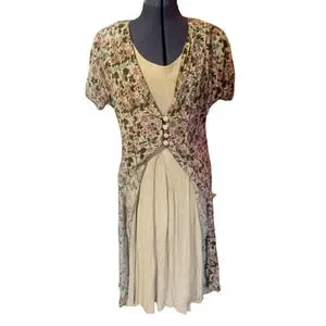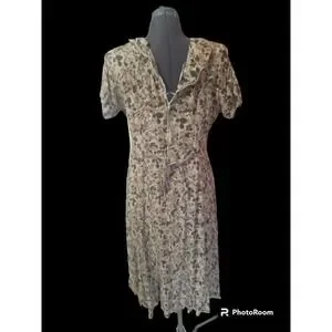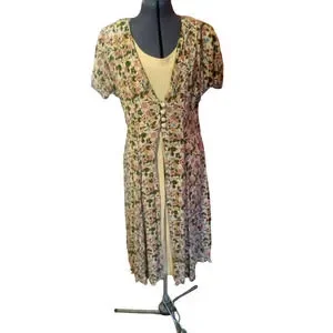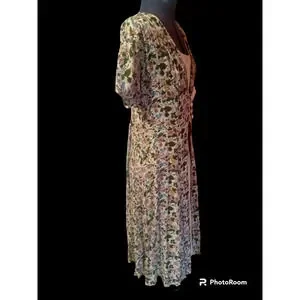 Marnie West vintage tan floral open front maxi dress, Size 9/10
