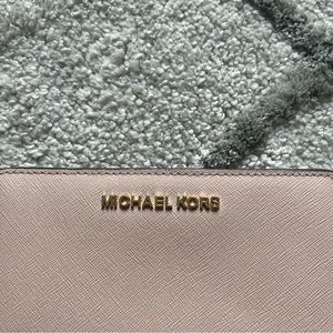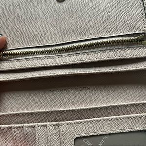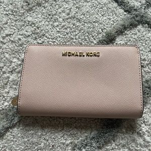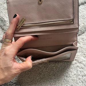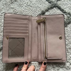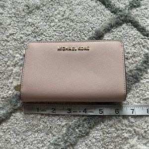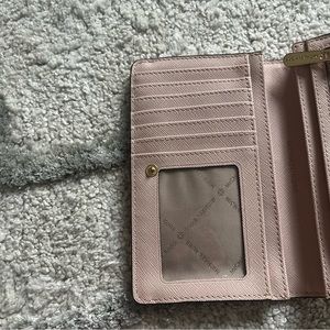 Michael Kors pink leather wallet card holder snap button coin pocket