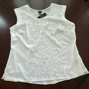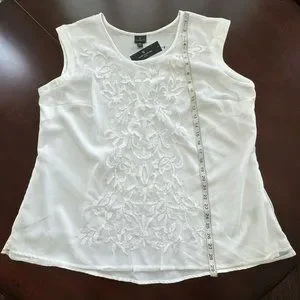 Worthington 2X Sleeveless White Lace Overlay on white top