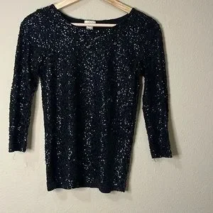 J Crew Sequin 3/4 long sleeve top, Black. Good condition