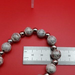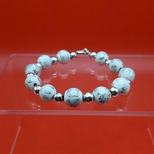 7 Inch 925 Sterling Silver White Scrolled Glass Handmade Bracelet