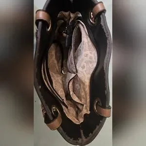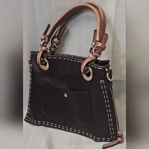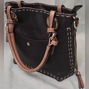 White stitching, tan leather straps