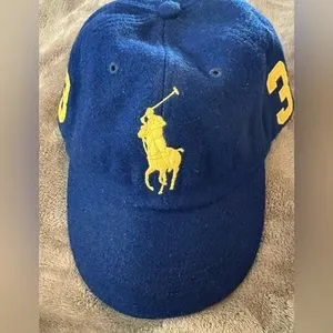 VINTAGE POLO RALPH LAUREN Blue 57% WOOL 43% VISCOSE HAT BASEBALL CAP. Leather adjustable strap. Rare find. You have to know about these caps in order to appreciate the price. Yellow Pony, 3, MCMLXVII