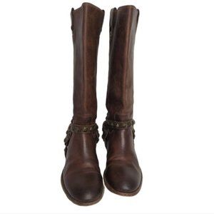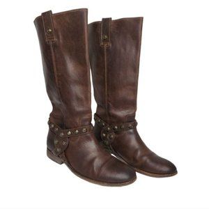 FRYE Melissa Brown Stud Leather Moto Riding Boots