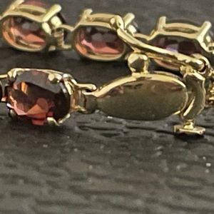 This garnet bracelet is absolutely beautiful with this oval, shape and clear stones. They sparkle in the light as if they were diamonds. It weighs approximately 8.9 g and is 7 inches in length.