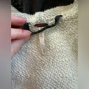 I’ve had this jacket since high school. It is well loved and I’m sad to be selling it, but since I’ve gotten into weight lifting it’s just too tight on my biceps to be comfy anymore. I hope someone else can love it as much as I have.