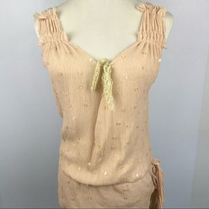 HAZELHAZEL Soft Pink Sleeveless Sequin Delicate Top. Waist tie strap. Great Condition!